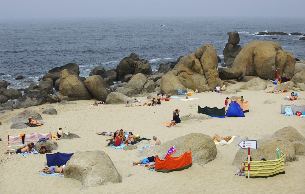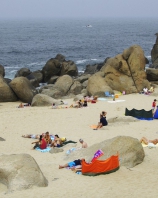 Beach with small area of sand (thin and white sand), predominantly with rocky substratum