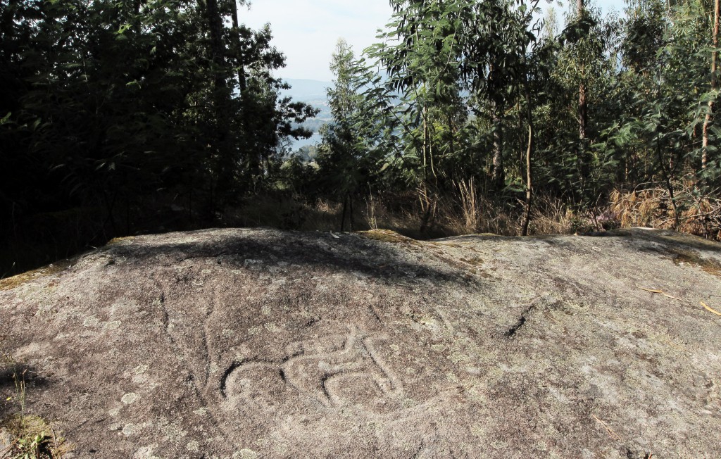 «Executadas durante a Idade do Bronze, as gravuras foram descobertas na superfície de uma laje localizada num pinhal situado entre a Chã das Carvalheiras e a localidade de Lanhelas, pelo conhecido investigador Abel Viana, entre as décadas de vinte e de trinta do século XX.