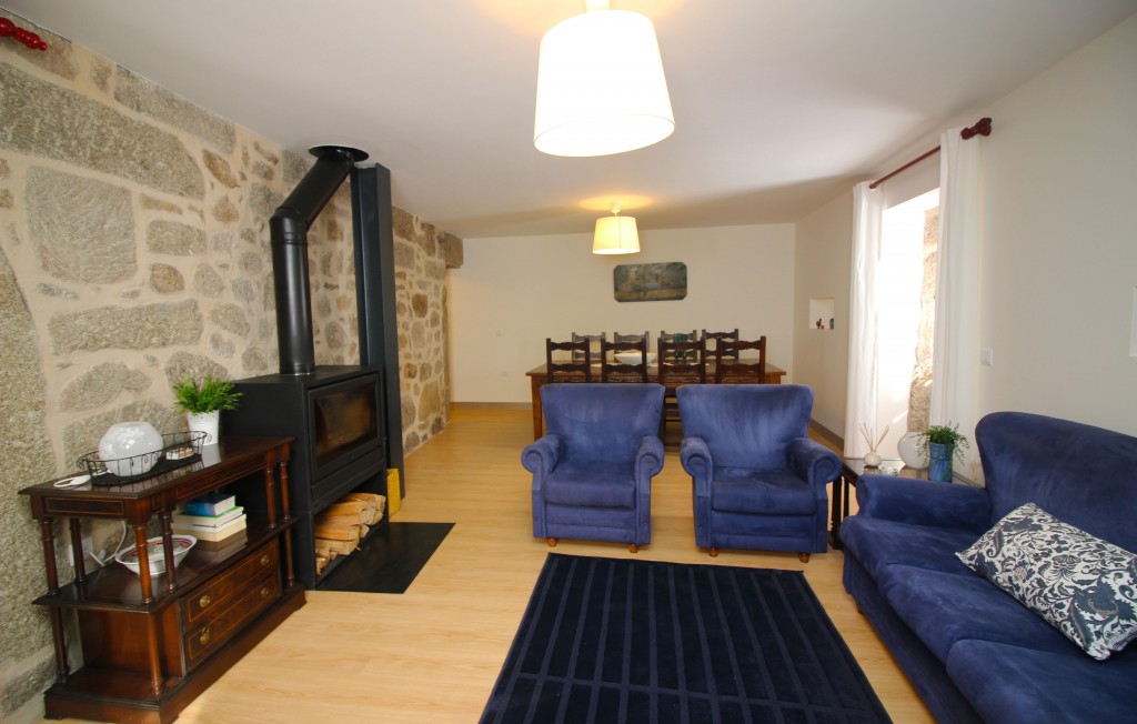 Quatro quartos: dois com cama de casal, dois com camas individuais e duas casas de banho. Cozinha equipada para preparar refeições. Sala de estar com sofás e televisão. Fornecida roupa de cama e banho.