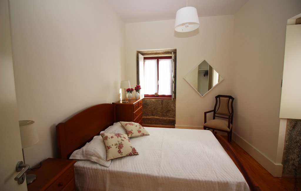 Quarto: Cama de casal, Camas Individuais, Luzes de cabeceira, Mesas-de-cabeceira, Roupa de cama.